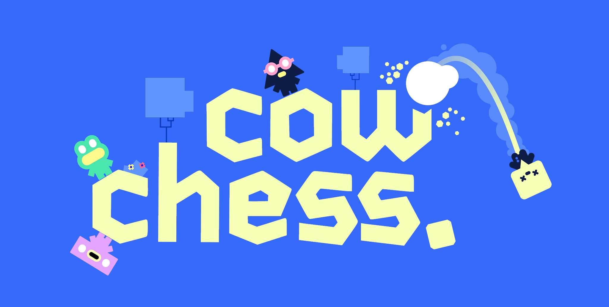 Cow Chess is a real-time artillery party game (think Super Smash Bros meets Worms). It features fluid, wall-sticking movement, punchy weapons, and fully destructible terrain. As the game progresses, you unlock upgrades that transform your abilities, pushing you to adjust your strategies on the fly.